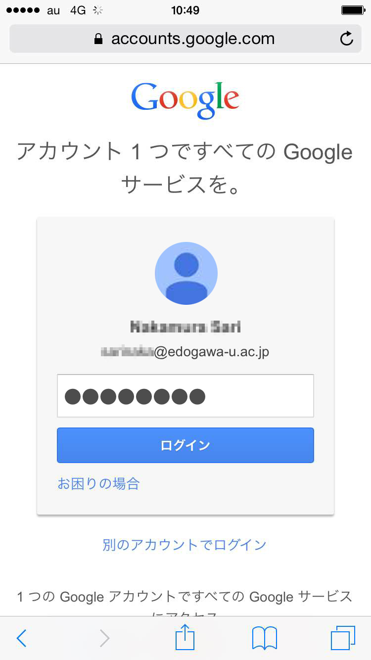 3.Googleアカウント(在学生の場合は大学で配付されたメールアドレス)でログインします。