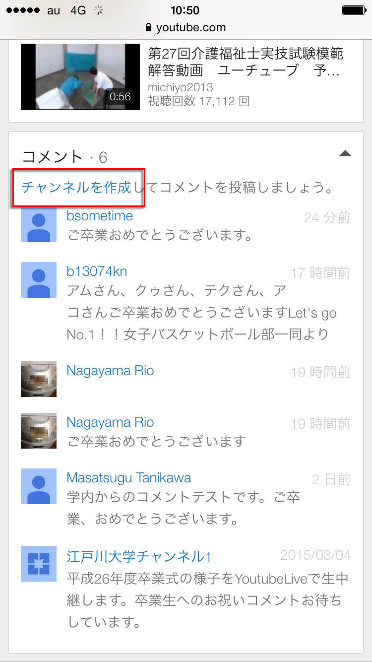 4.初めての人は「チャンネルを作成してコメントを投稿しましょう。」が表示されます。「チャンネルを作成」をタップします。