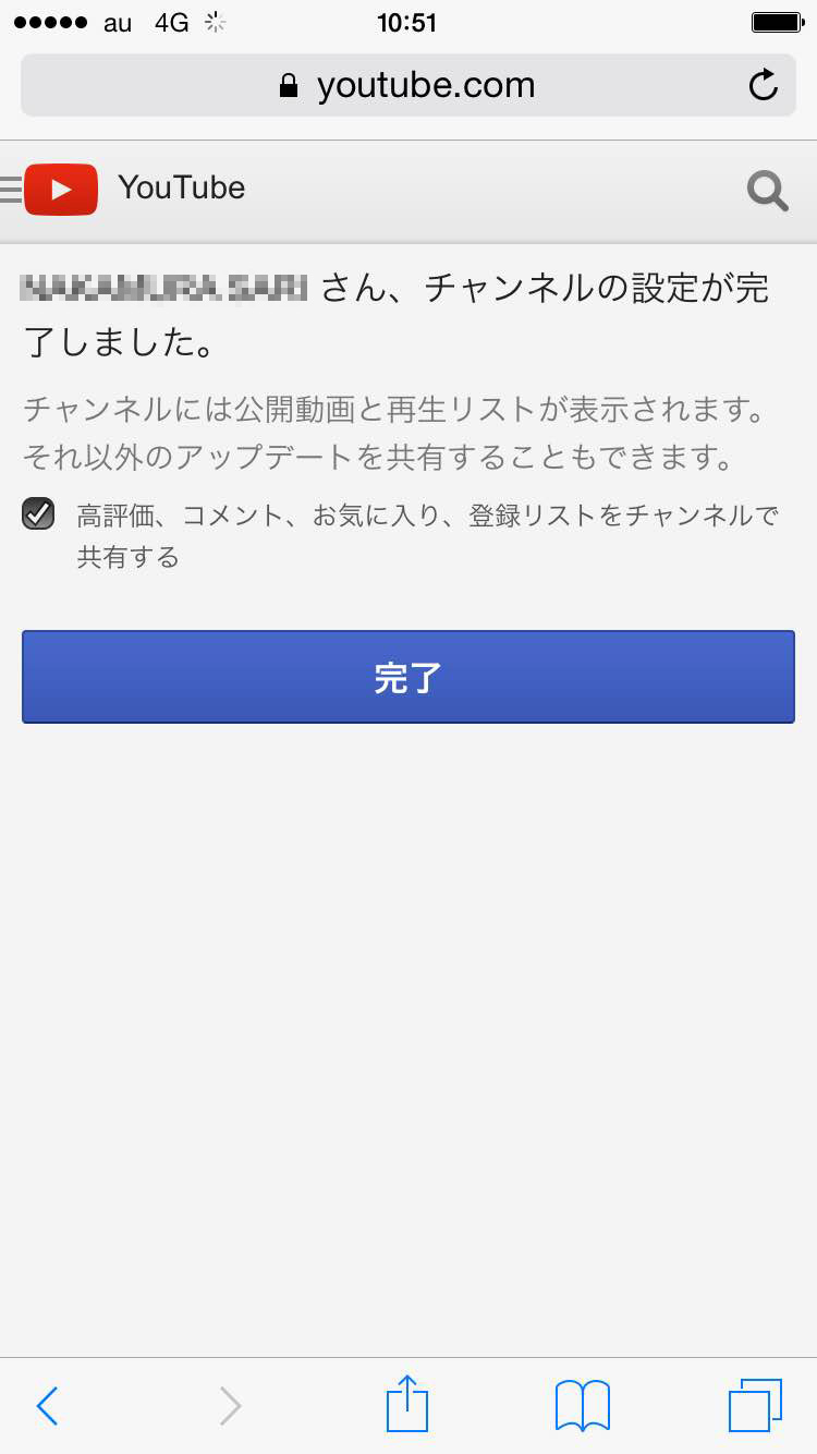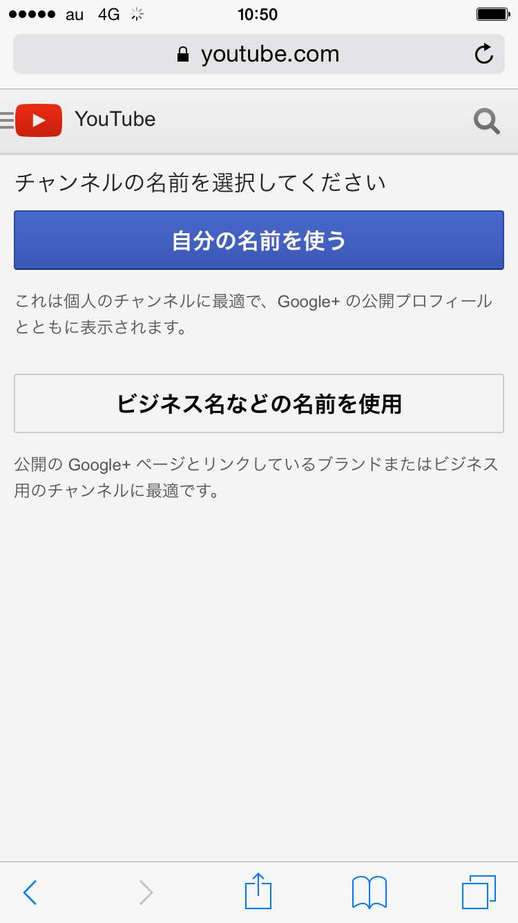 5.チャンネルの名前を設定します。コメント時の名前を変更する必要がなければ、「自分の名前を使う」ボタンをタップします。